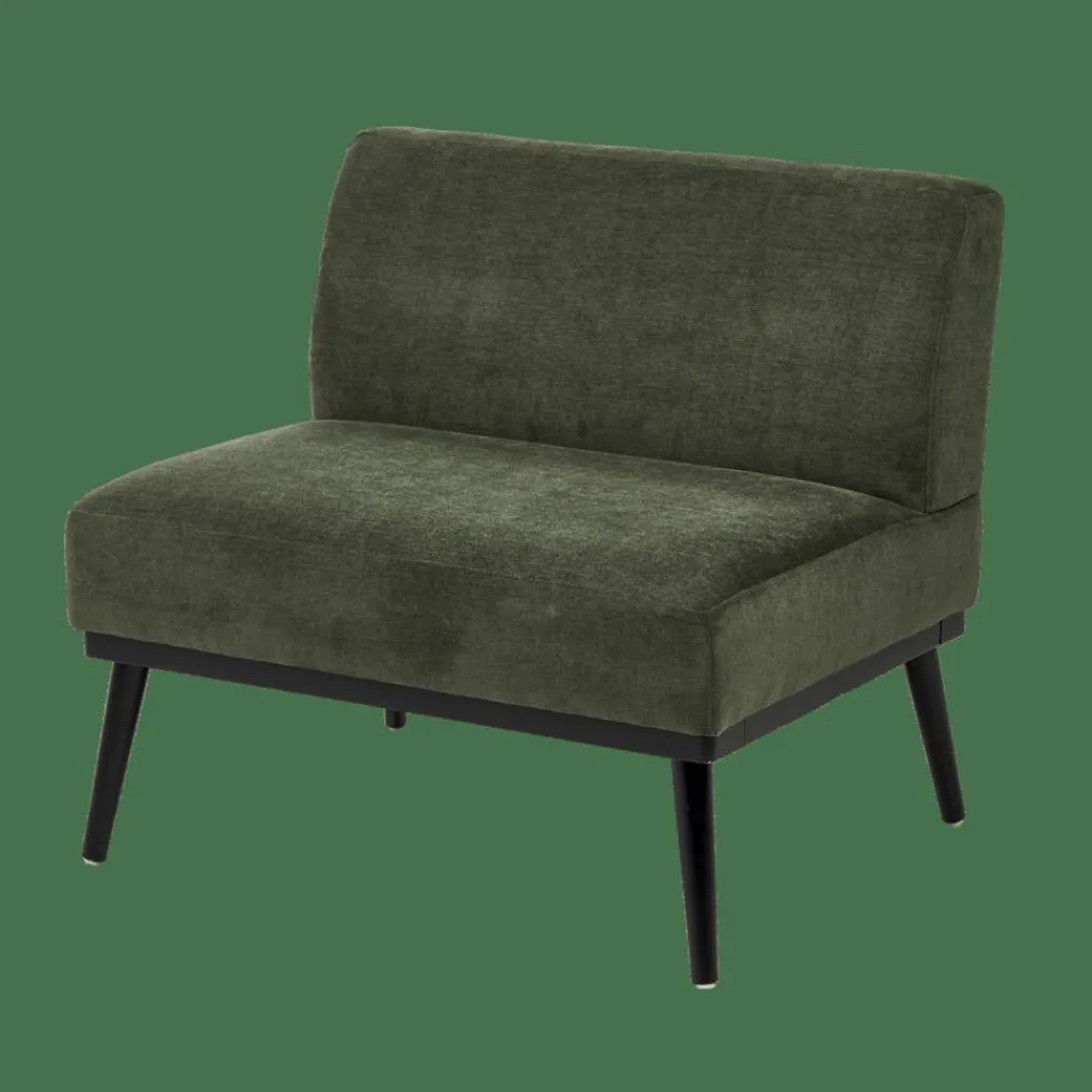 - Pés:, contraplacado preto, Enchimento:, espuma poliuretano, Revestimento: poliéster, chenille verde