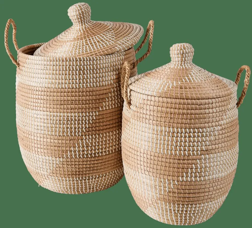 New CASA YASMINE Cesto Luxuoso Com Tampa Branco, Natural